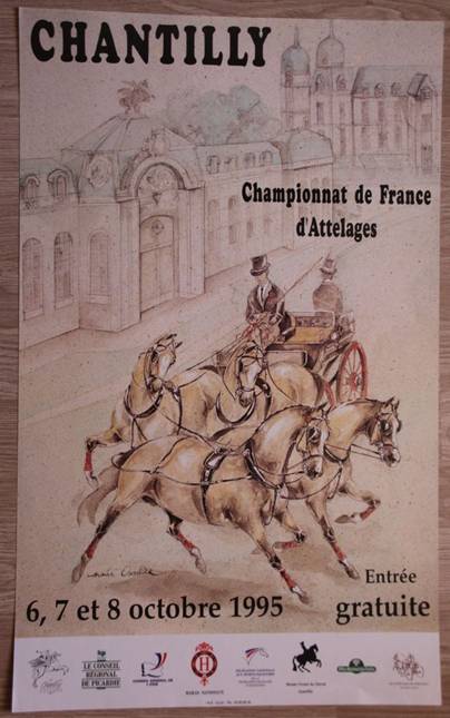 En 1995 l’association « les attelages de Chantilly » va organiser le championnat de France sur l’hippodrome de Chantilly avec des obstacles de marathon positionnés sur le dit hippodrome et dans le Parc de Sylvie. Un grand succès populaire et des autocars de supporters venus d’Alsace et de Bretagne. On retiendra également le samedi soir un diner de gala dans les Grandes Ecuries de Chantilly précédé du spectacle d’Yves Bienaimé et de ses écuyères.  On y a fêté aussi la présence de Patrick Greffier, Pierre jung et Gérard Dupont, champions du Monde par équipe à Poznan (attelage en paire).  Patrick Greffier a ramené la médaille de bronze à titre individuel.